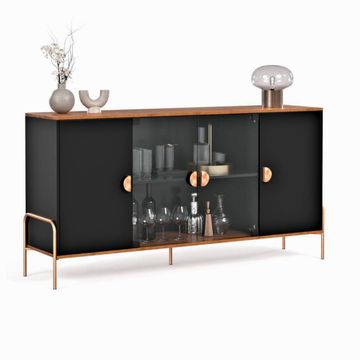 160cm Com Portas de Vidro Preto com Freijó - Rede Móveis