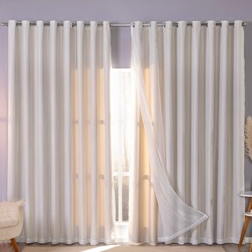 Cortina Blackout Com Voil 3,00 X 2,70m Para Varão Simples