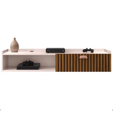 Rack Bancada Suspensa 90cm Sala Quarto 1 Porta Nicho Moderno Cor Off White/Ripado