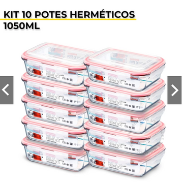Kit 10 Potes De Vidro Hermético Grande Marmita Tampa Silicone 1050ml