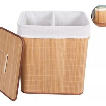 Cesto De Bambu Grande Duplo Com Divisorias Roupas Sujas Cor Marrom-claro