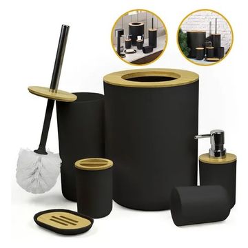 Kit Banheiro Lixeira E Acessórios Para Lavabo 6 Peças Lixeira De Bambu Escova Sanitária Luxo